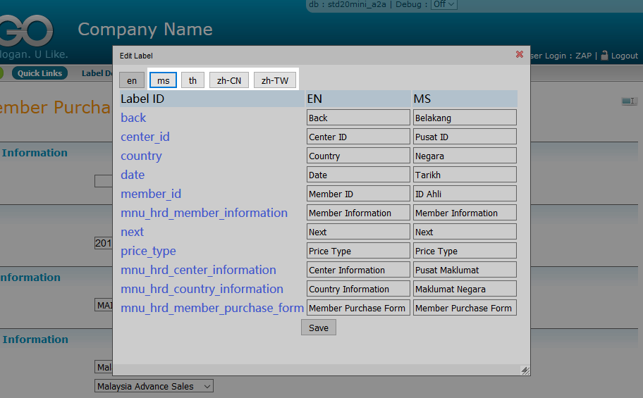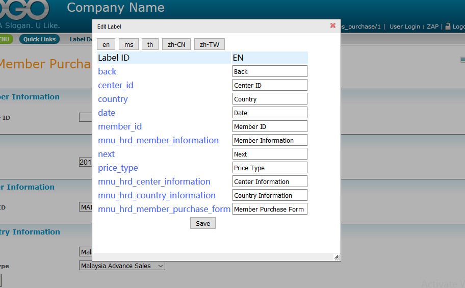 You can also click on Language button to translate the label to other language.