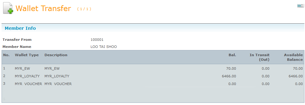 You will see all types of eWallet balance from the transferer. This allow you to check the available balance and only transfer the amount you have.